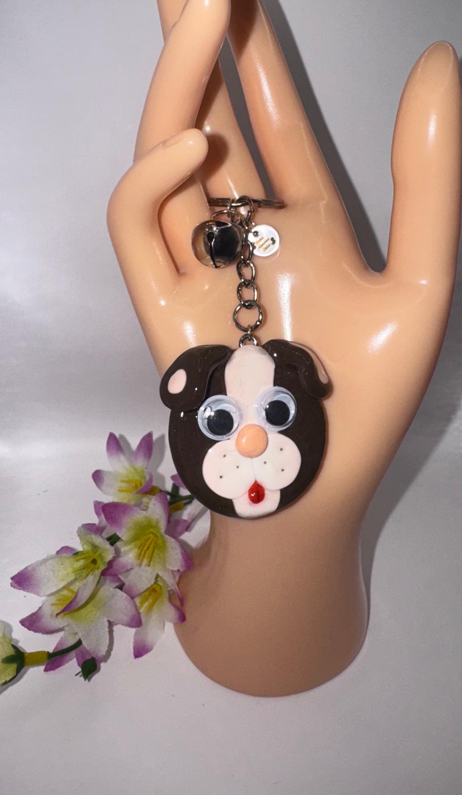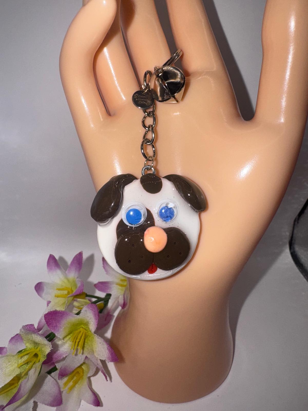 This handmade polymer clay keychain features an adorable dog face design, carefully crafted and finished by hand. Each piece is unique, lightweight, and made with attention to detail.